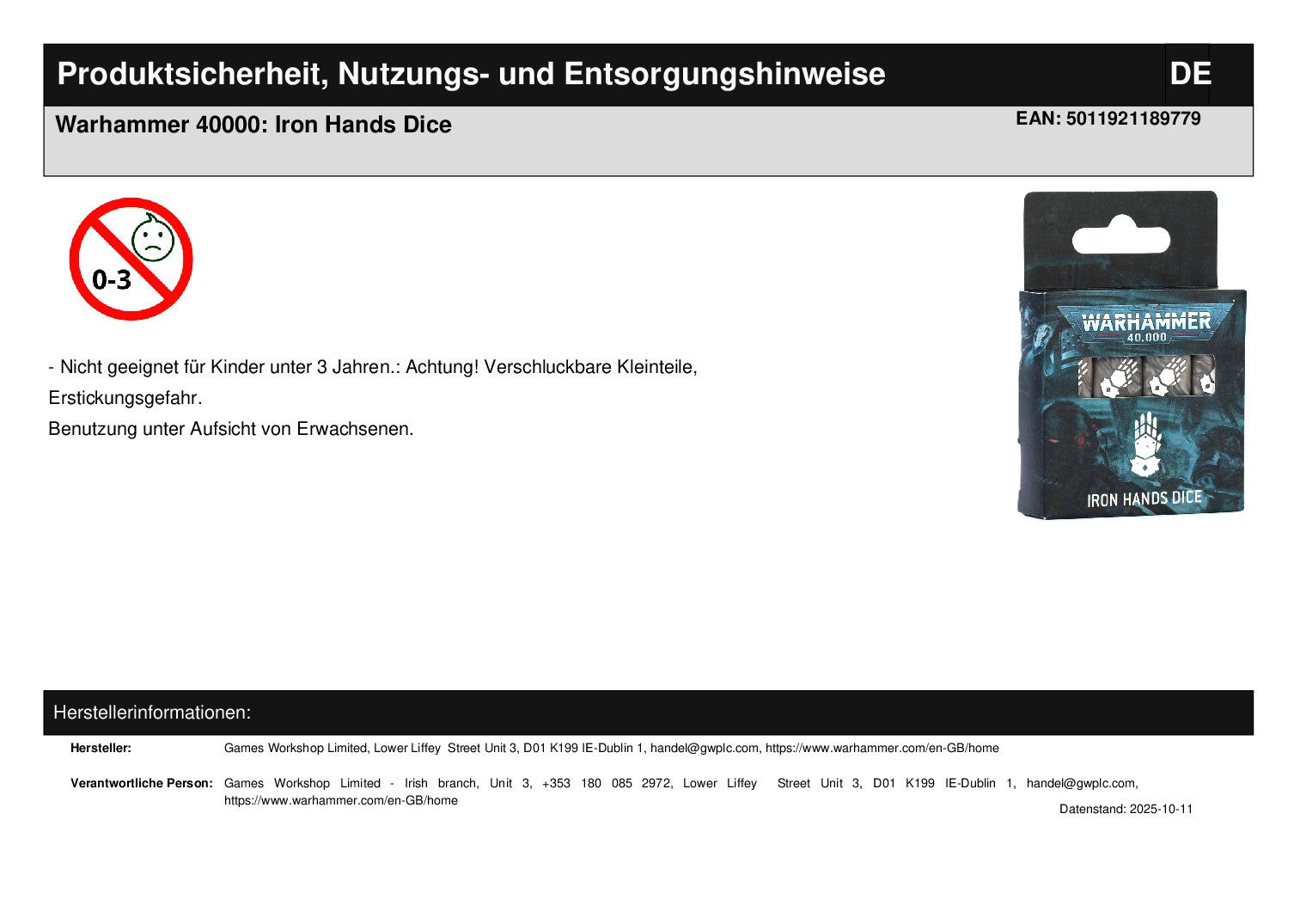 Produktinformationen "Warhammer 40000: Iron Hands Dice"