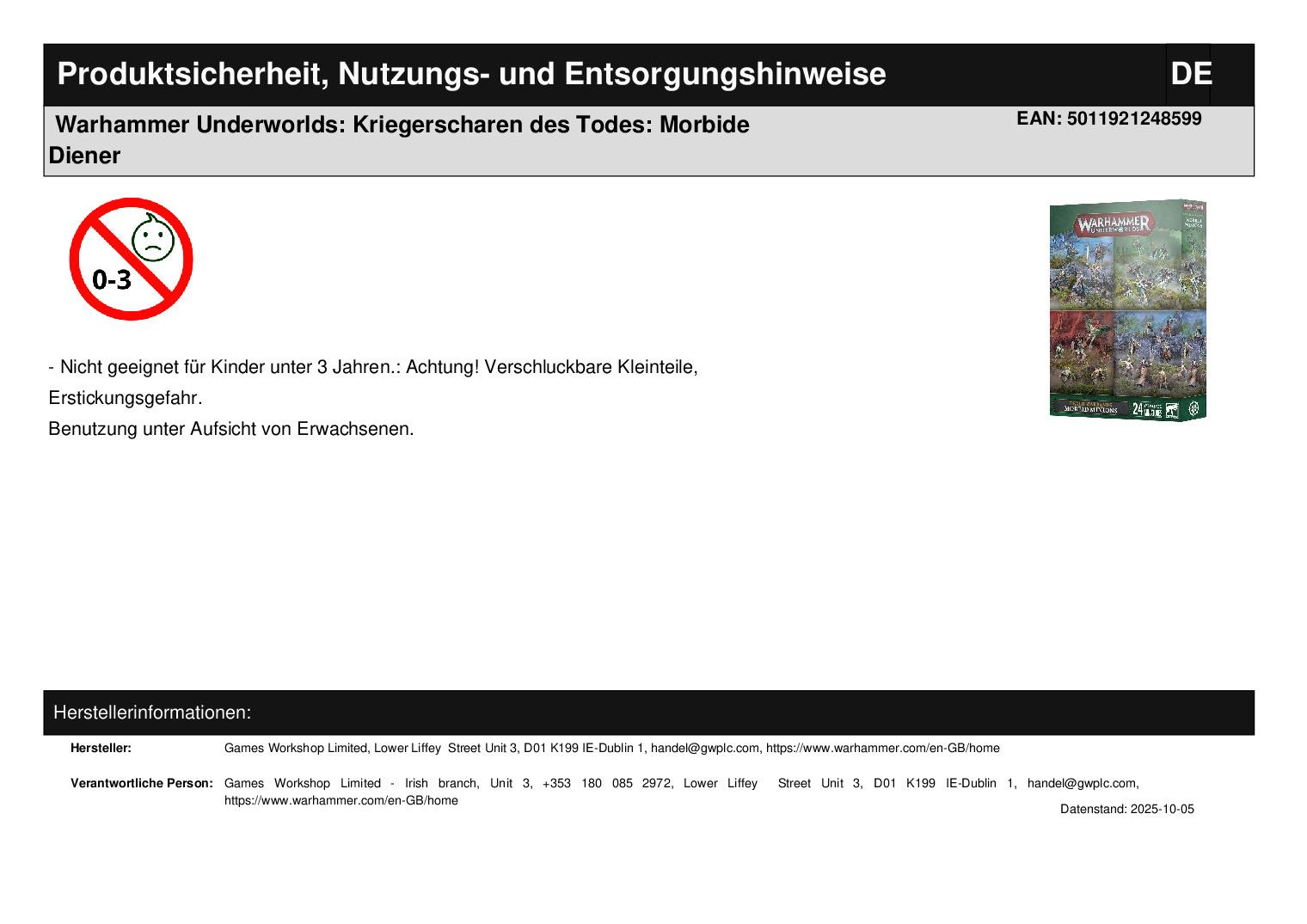 Games Workshop Limited Lower Liffey Street Unit 3 D01 K199 Dublin 1 handel@gwplc.com https://www.warhammer.com/en-GB/home WEEE-Nummer: