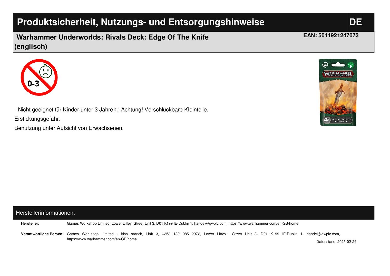 Games Workshop Limited Lower Liffey Street Unit 3 D01 K199 Dublin 1 handel@gwplc.com https://www.warhammer.com/en-GB/home WEEE-Nummer: