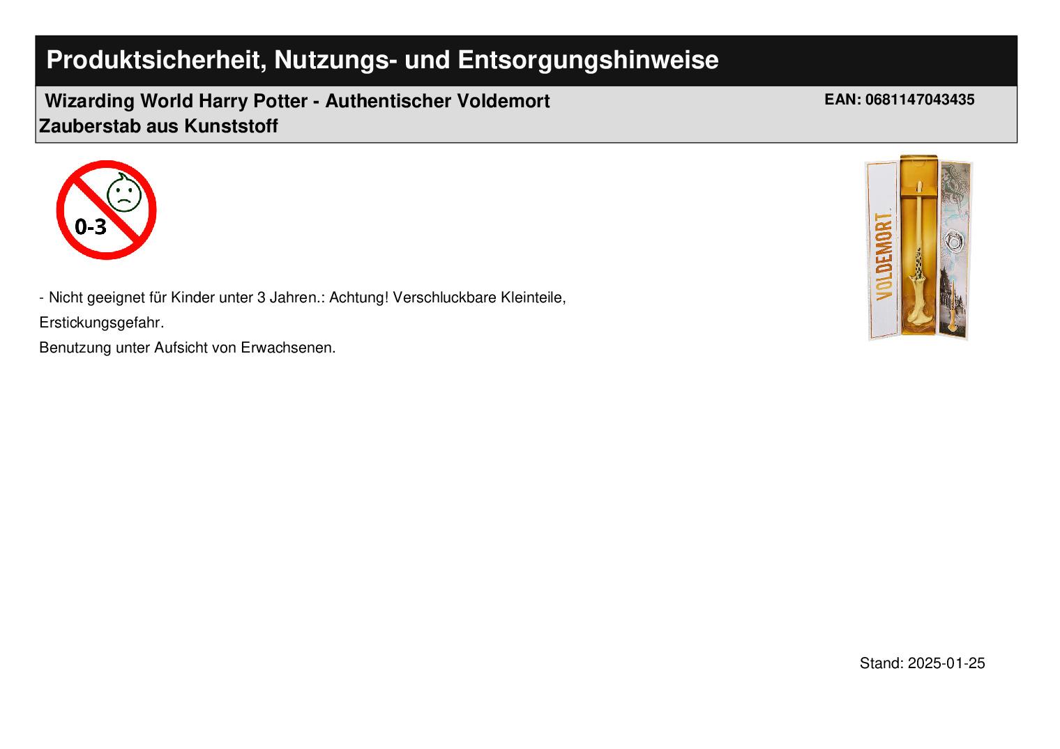 Wizarding World Harry Potter - Authentischer Voldemort Zauberstab aus Kunststoff