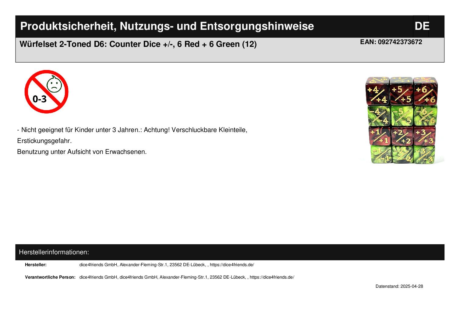 Produktinformationen "Würfelset 2-Toned D6: Counter Dice +/-, 6 Red + 6 Green (12) "